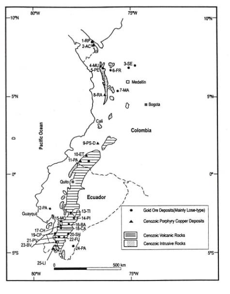 porphyry copper deposits in Colombia and Ecuador (Northern Andes). List of